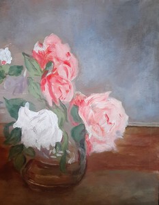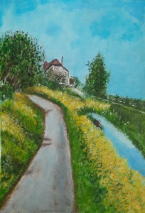 2023Delicate mondgeblazen kleurige bloemen met verschillende kleuren. Ik probeer met het kwetsbare glas samengestelde vormen te creëren. De bloem bestaat uit verschillende onderdelen van glas die in elkaar passen. Het dunne glas benadrukt de tere bloem.Inspiratie haal ik uit de omgeving Midden-Delfland, een stukje hiervan ziet u op de achtergrond.